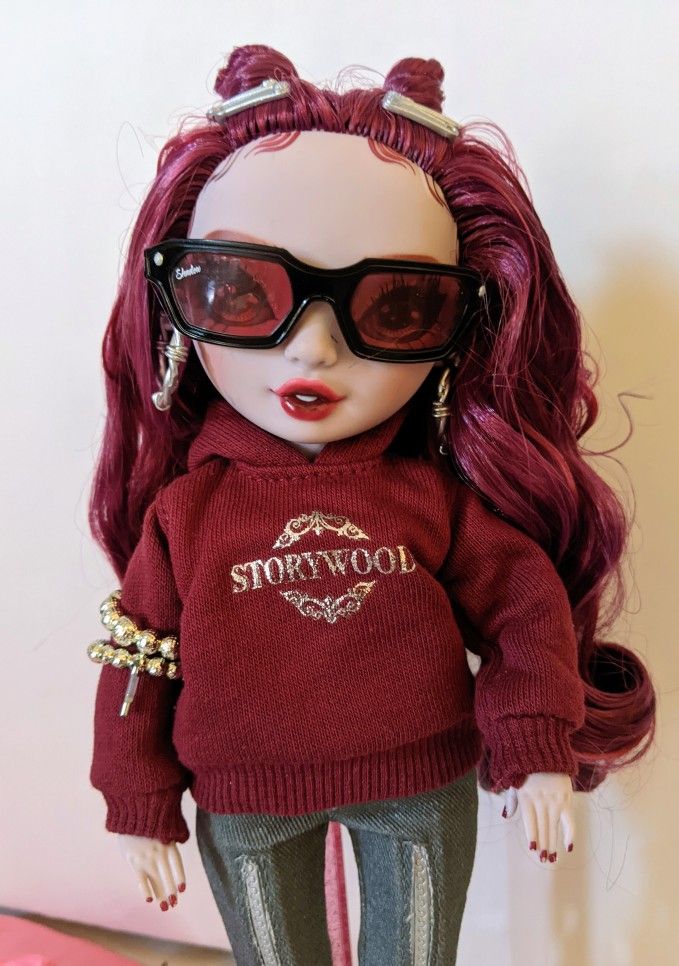 Rainbow High Scarlet Rose Doll by MGA Entertainment. She's in good condition. She has her stand which doesn't like to hold her very well. She has two lots of earrings, sunglasses and some other accessories. Her hair is in good condition. She still has the styling glue in her hair. She does have a few marks on her face, please see photos. Please see photos for full details as they are VERY IMPORTANT to her description. She's from a smoke free home. Thank you so much for stopping by and taking a look.