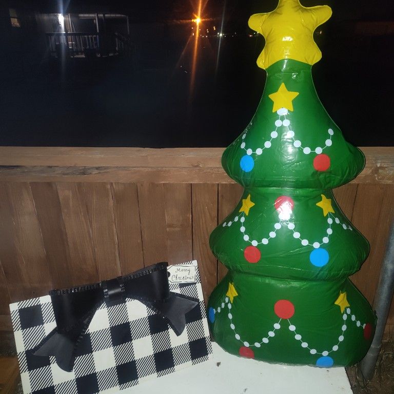 Outdoor Christmas Decor Metal present w/ stand in back Measures-