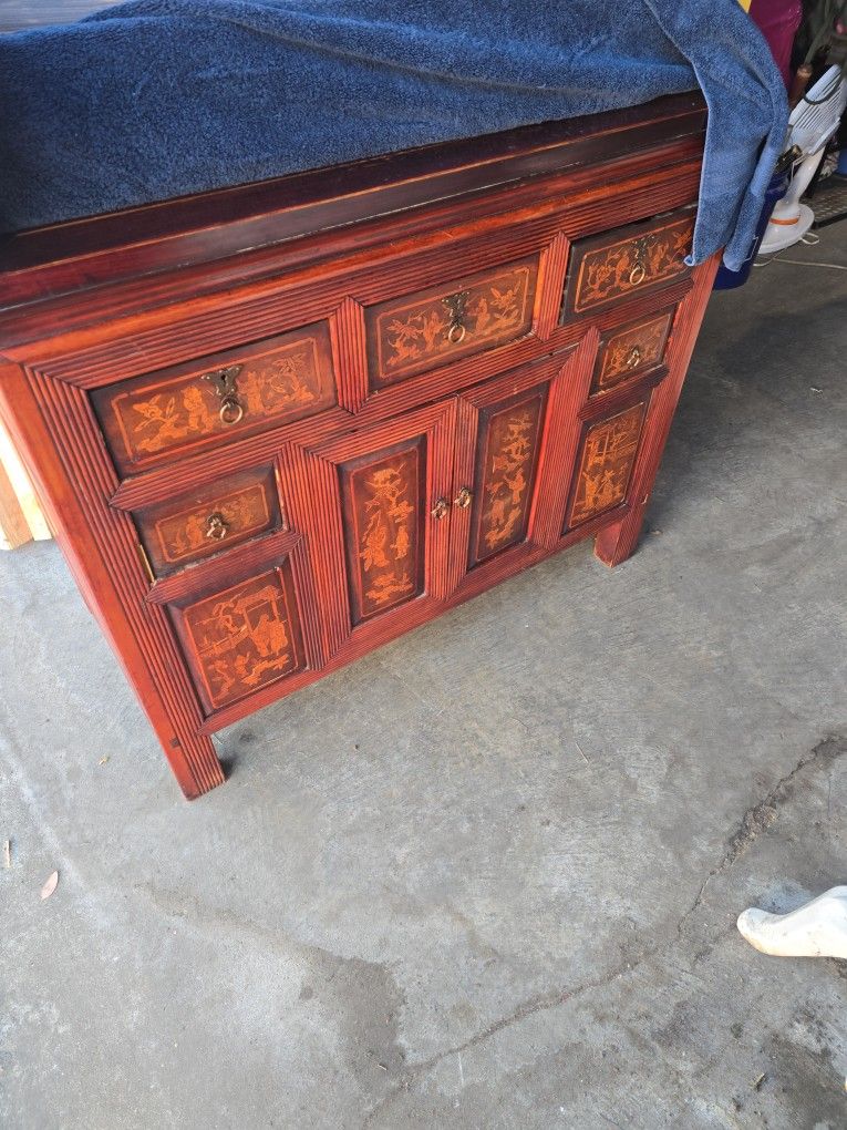 Antique Chinese Inlaid Wood Cabinet / Chest – Hand-Decorated Panels