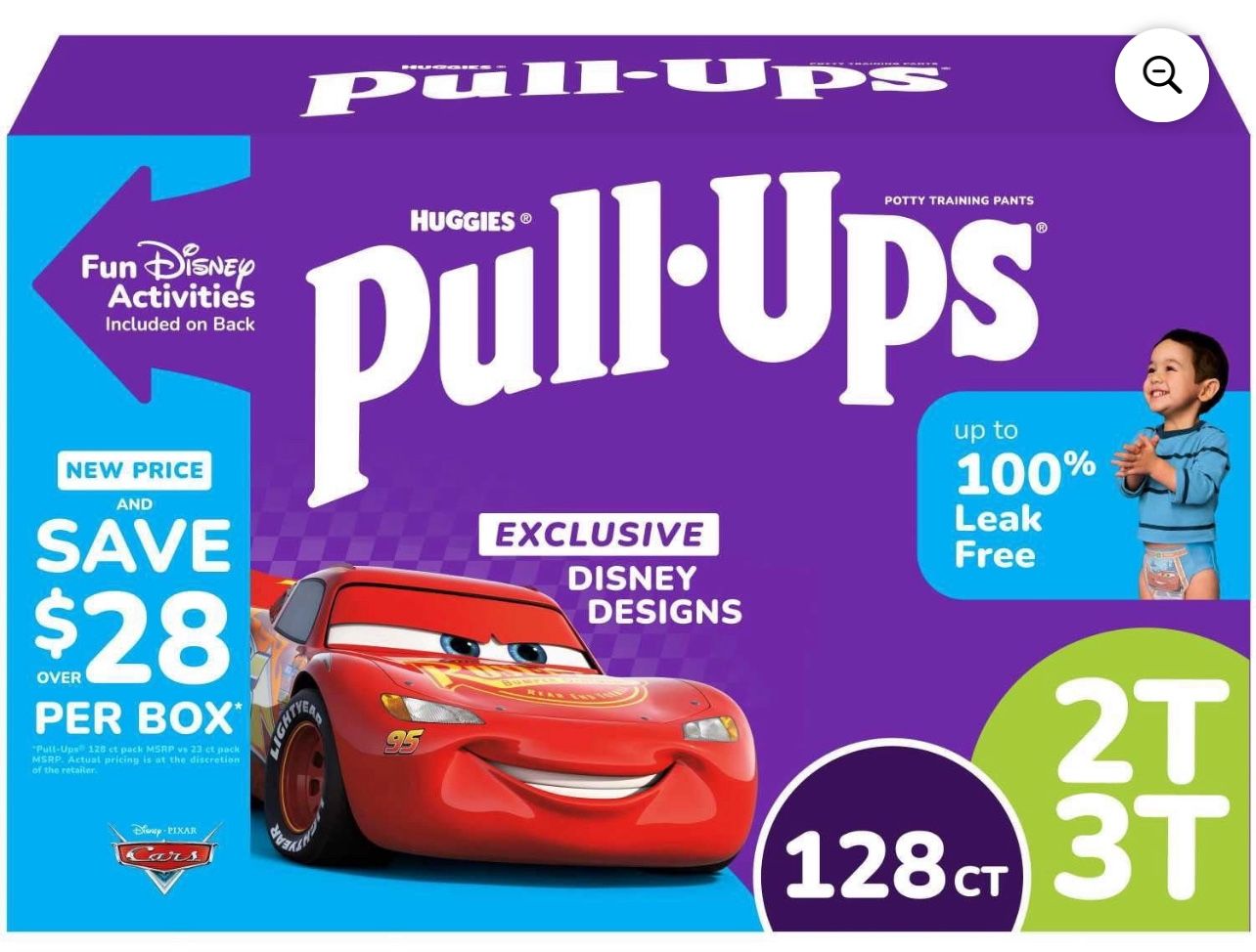 Huggies Pull-Ups Potty Training Pants for boys, featuring exclusive Disney Pixar Cars designs 2T-3T (18-The bag is open; my child uses it more now that he's grown.105 diapers