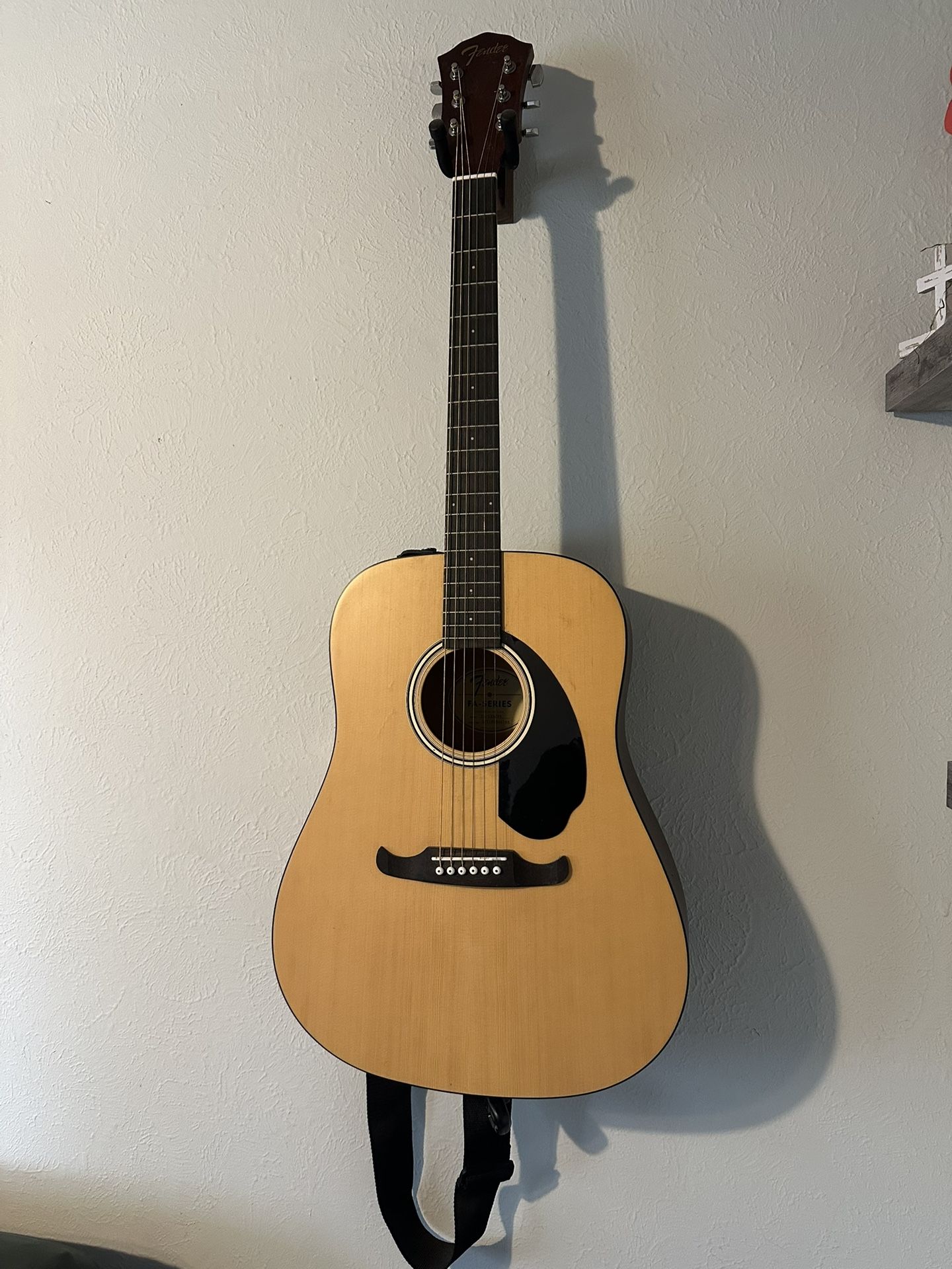 Fender FA-125/NS Pretty much was a art piece Comes with: Wall hanger Tuner (Need new battery) Ground Stand Extra strings and user manual