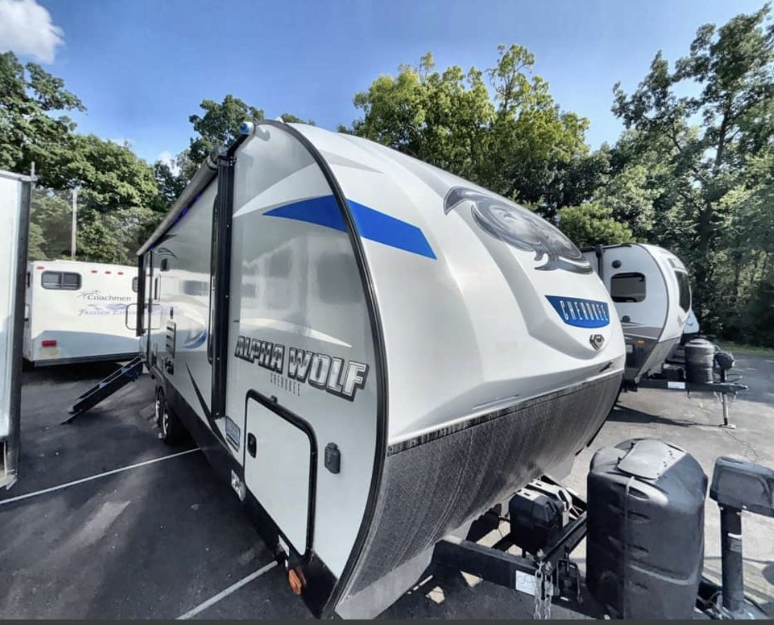 π₯ποΈ 2020 FOREST RIVER CHEROKEE ALPHA WOLF 23RD-L β REAR DINETTE β’ SPACIOUS β’ LOADED! ποΈπ₯ If youβre looking for a travel trailer that feels BIG inside but is still easy to tow, this is it! The 23RD-L layout is one of the most desirable floorplans with the huge rear dinette and panoramic windows β tons of natural light and open living space. β¨ Highlights: β Spacious rear dinette (converts to additional sleeping) β Private front bedroom β Large slide-out for extra room β Modern kitchen with stainless appliances β Big refrigerator β Full bathroom with roomy shower β Power awning β Outdoor speakers β Tons of storage inside & out This unit is perfect for family trips, weekend getaways, or long stays at the campground. Super comfortable layout that doesnβt feel cramped like smaller campers. π₯ Clean π₯ Well maintained π₯ Ready for the road Financing available. Trades welcome. π² Message or call ASAP β quality pre-owned units like this donβt last long!