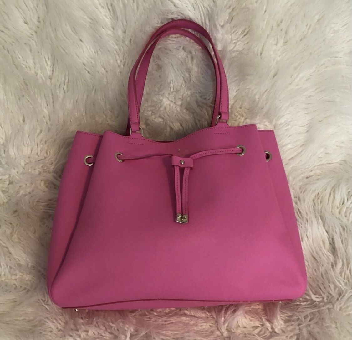 Kate Spade large leather tote bag. Pink on the outside, orange interior. Brand new never been worn, but without original tags. Bag is 13.5”L x 4.25”W x 11”H.