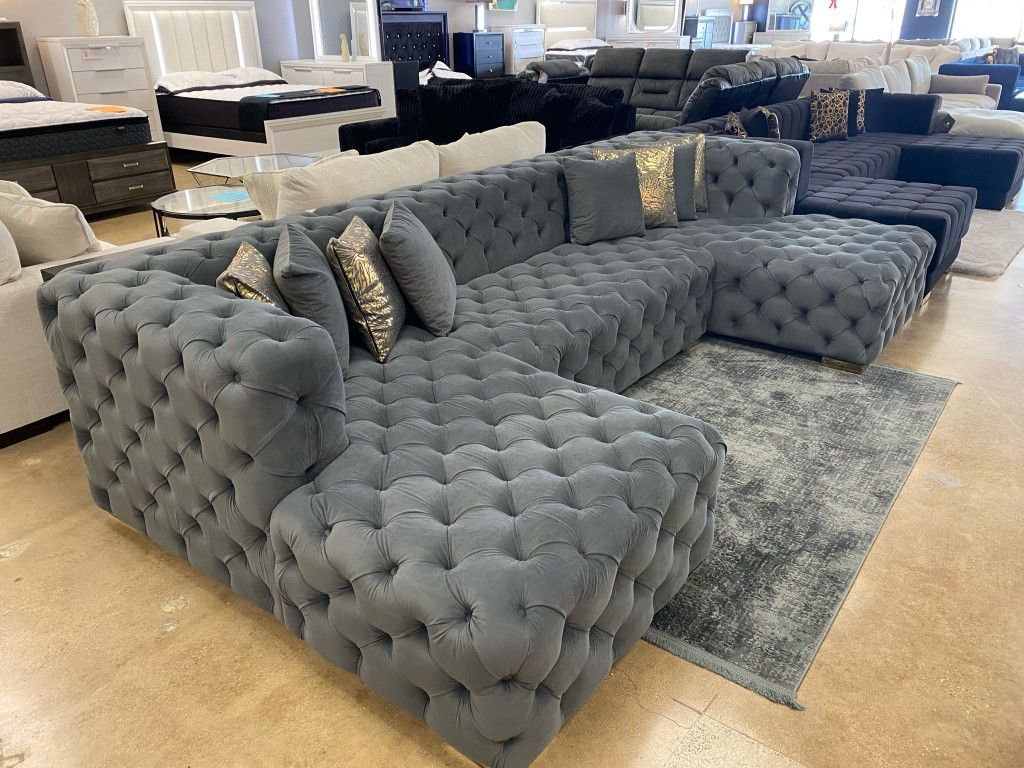 Brand New/ Gray Velvet Double Chaise Sectional, Seccional, Couch