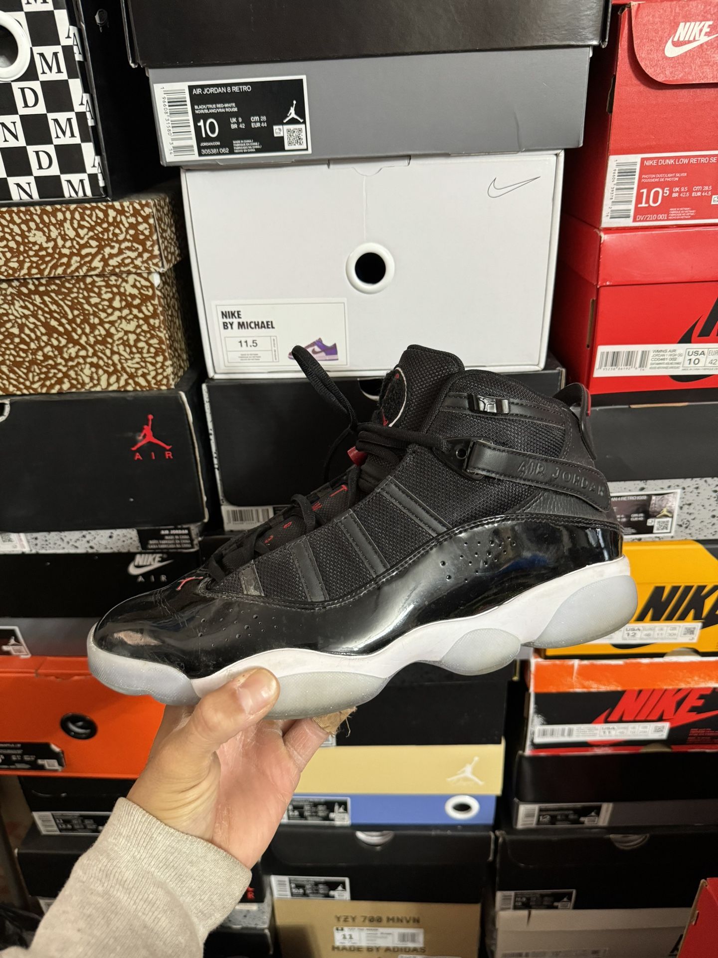 Jordan 6 Rings Black Gym Red size 11 USED But Clean