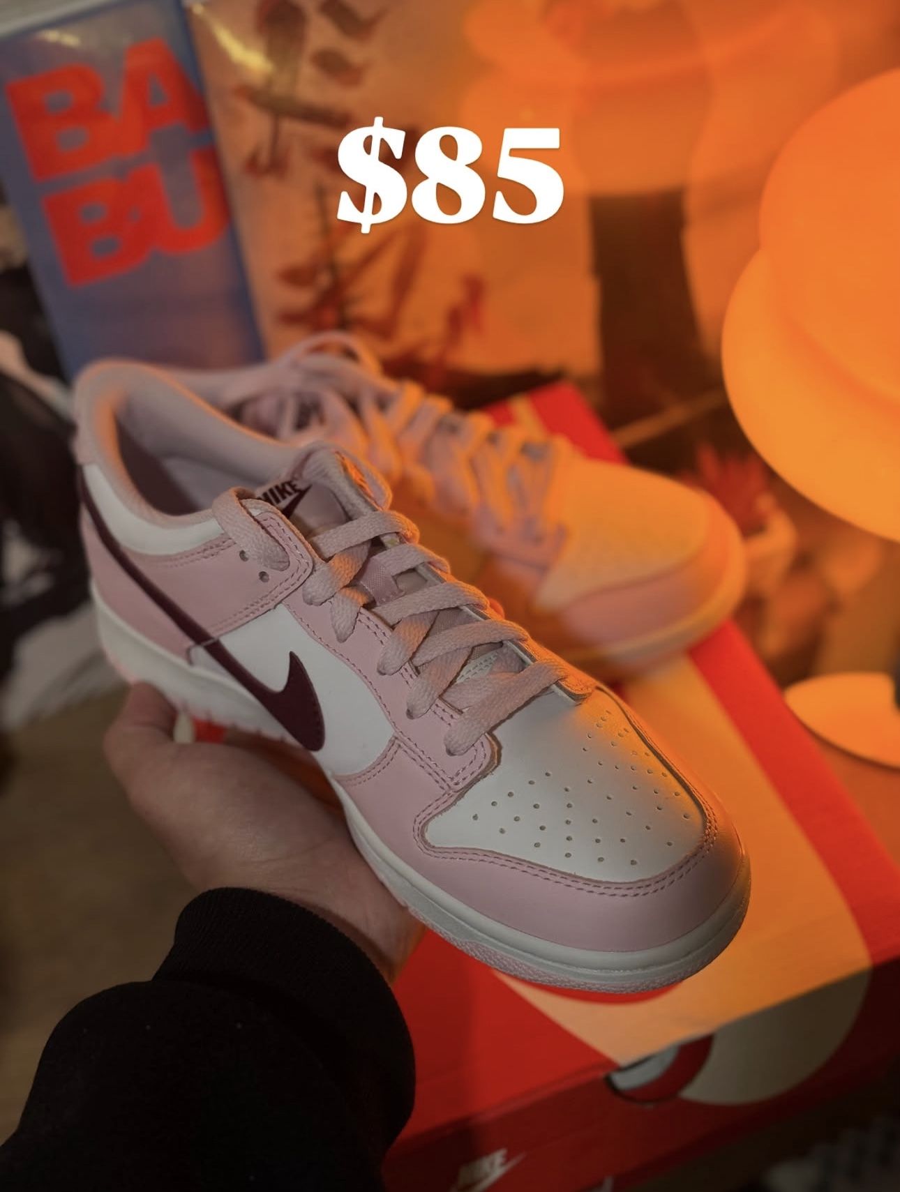 Nike Dunk Low: Pink Foam Red White GS Size: 6Y - 7.5W Our Price: $85 Brand New DM or Comment if interested For more listings: izaksellz
