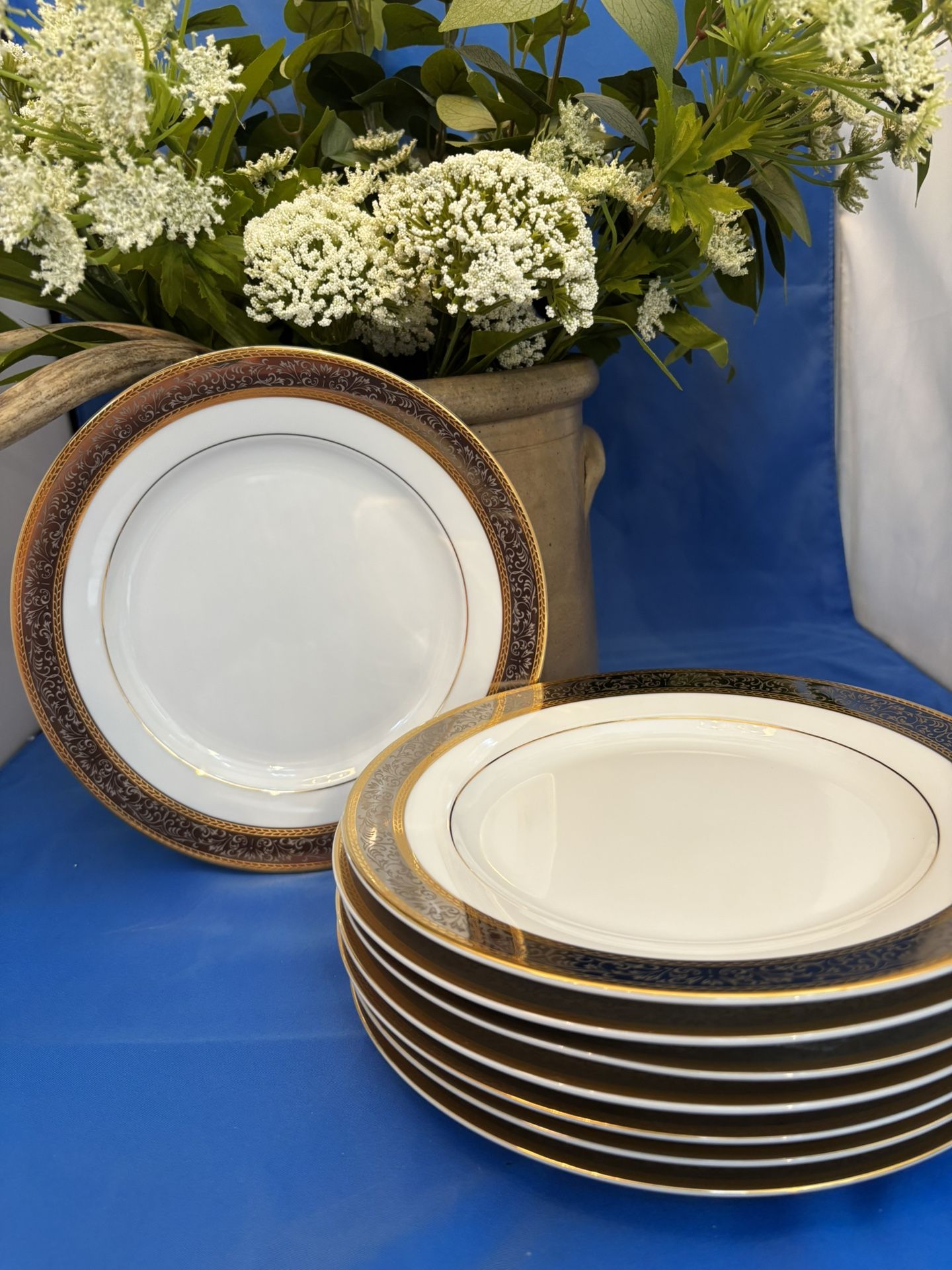 8 Inch Fine Porcelain Silver And Gold Rimmed Salad Or Dessert Plates