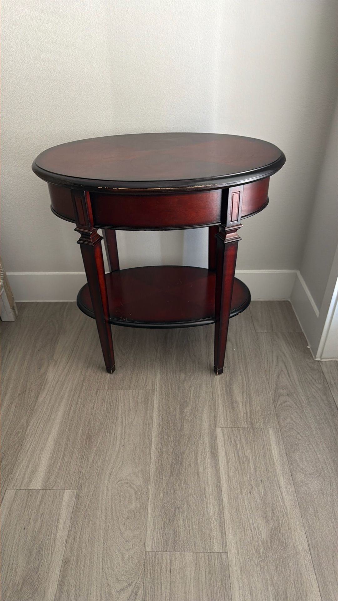 Sturdy, pretty little side table. 26” w x 25.5” H x 17.5 “ Depth.