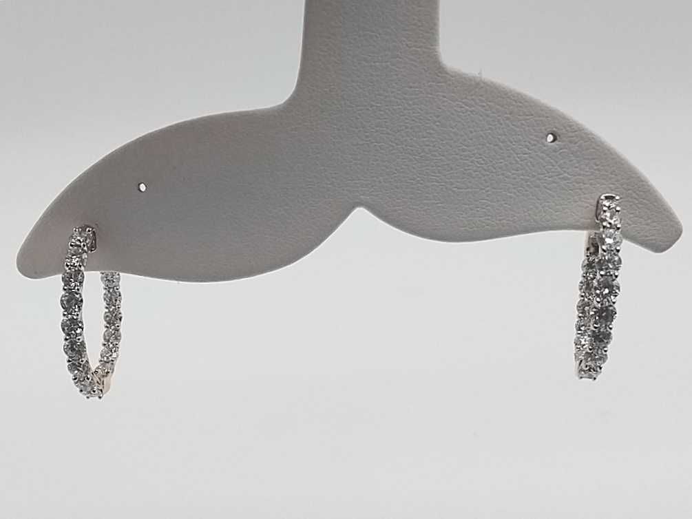 Overview 119010006111 3.0 Dwt Lab Grown Diamond 4.3 Grams Bangle Earring Sterling Silver. Good Pre-Owned Condition. Slight scratches on metal. Stamped 925. Material Type Silver Weight (in grams) 4.3 Quality 92.5% Stone Details # of Stones Color Size Shape Quality 30 Lab Grown Diamond 10 Round High