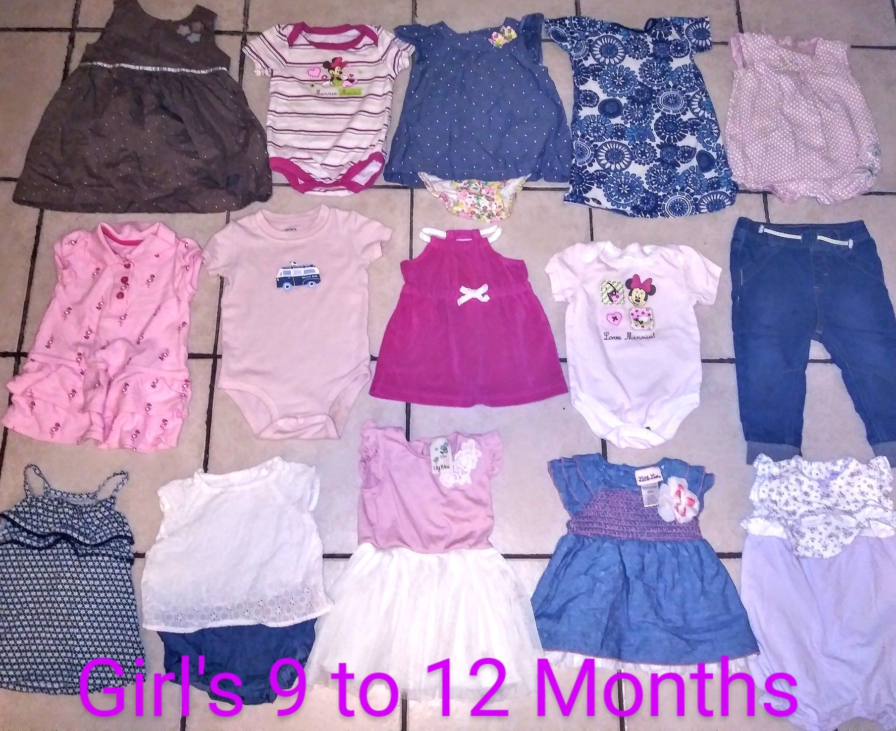 Infant Girl's Size 6 to 12 Month Bundle. There are 19 pieces with this bundle all in excellent condition and all named brand. Perfect wardorobe for summer.