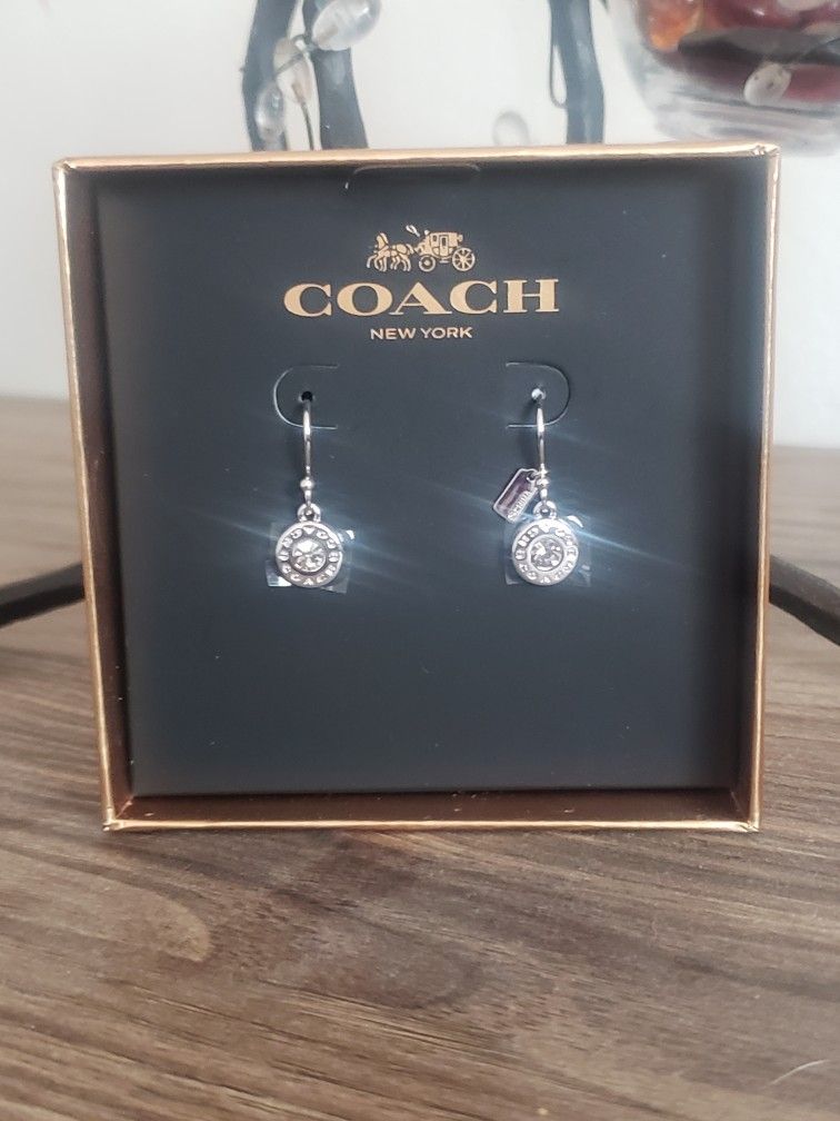 Brand new, never worn. Silver drop down Coach earrings.