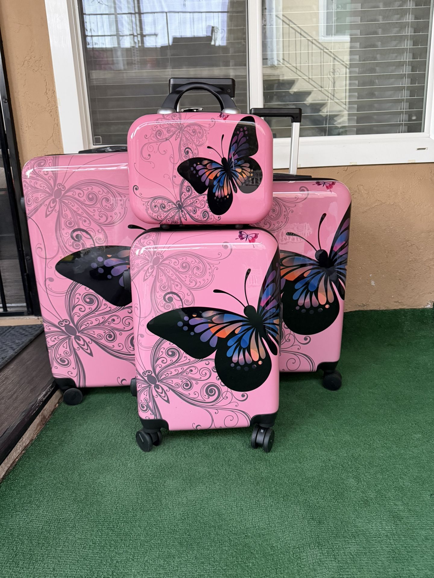Brand New Luggage Luggage 4 pcs 14"/20"/24"/28" inch LUGGAGE SET CLASSIC PINK BUTTERFLIES SUITCASE ABS+PC CARRY ON TRAVEL TROLLEY BAG Christmas Gifts Price is Firm $120 Cash Only