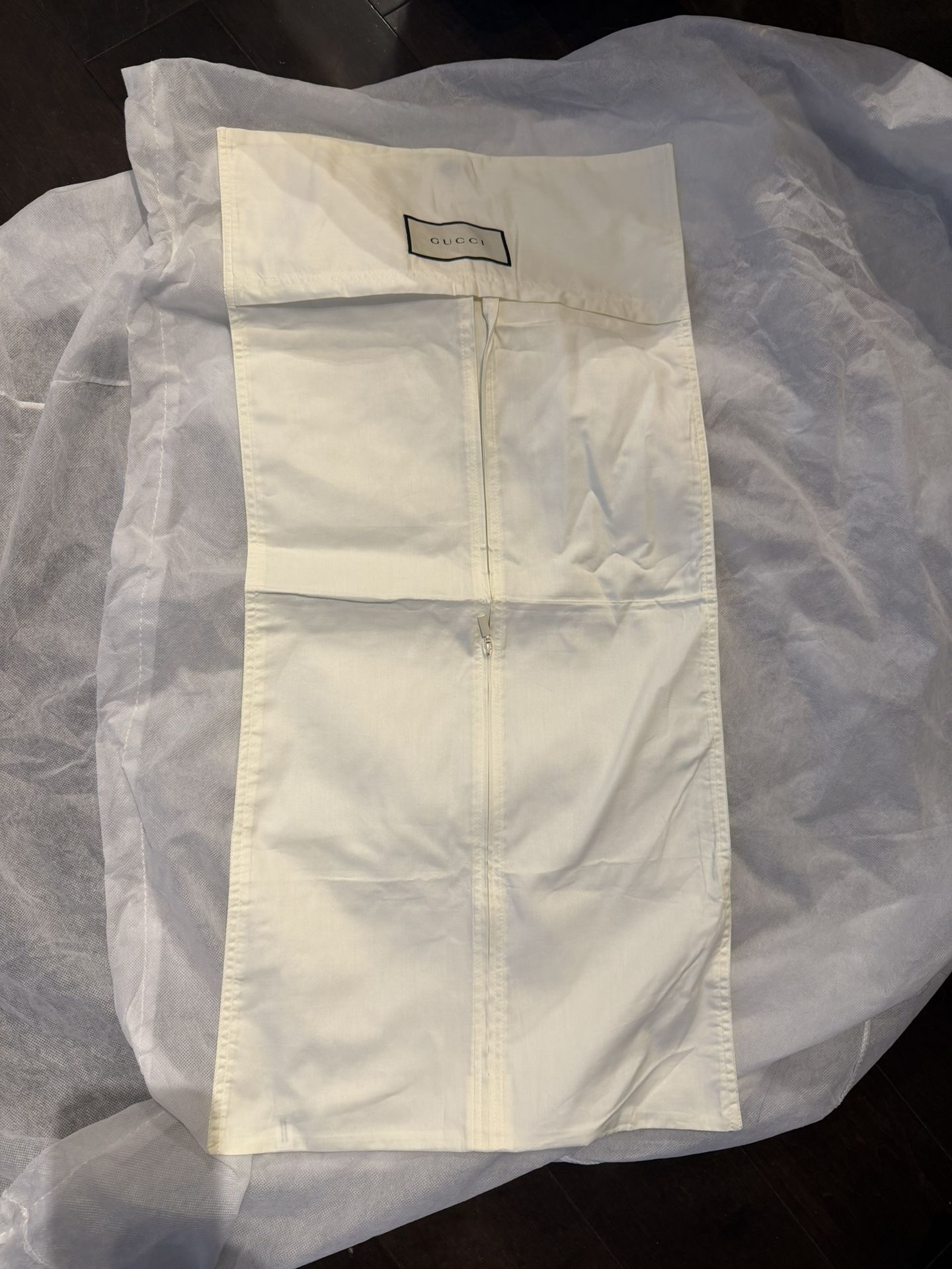 Authentic Gucci White Long Zip Closure Travel Luxury Garment Bag 32.75” X 15.25
