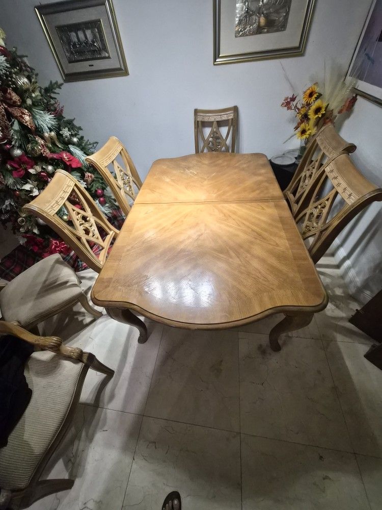 Expandable made of solid wood dinning table and 8 chairs.
