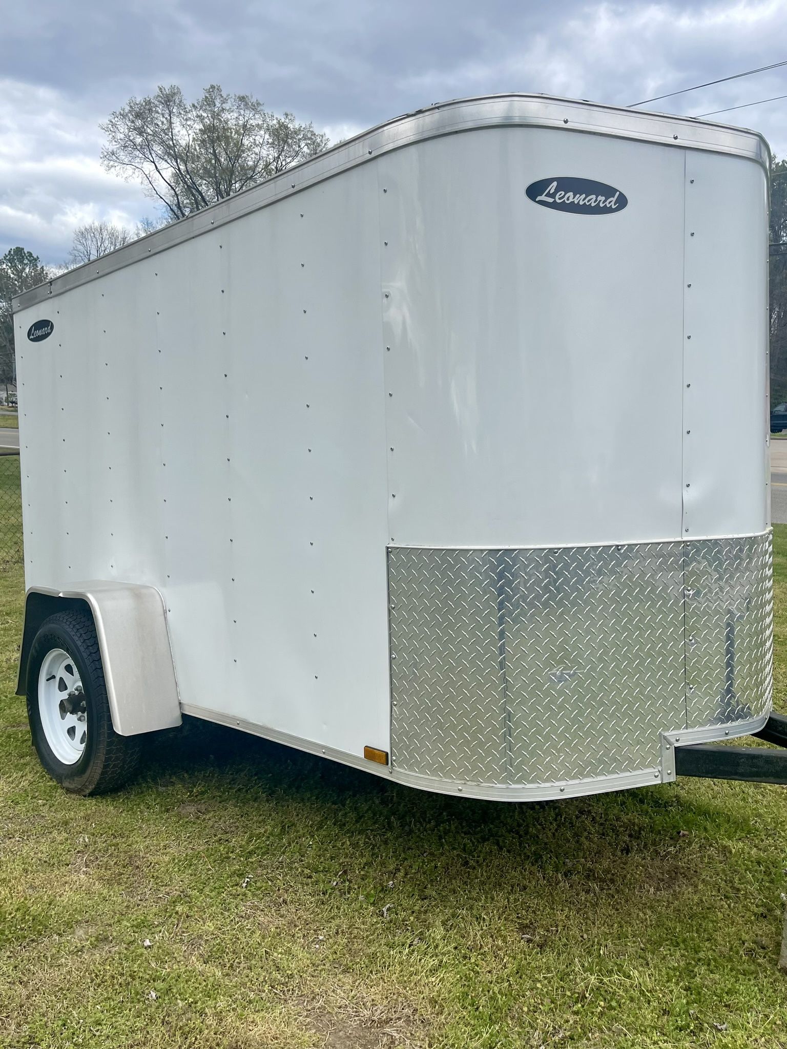 White Leonard 5x8 Cargo Trailer w/ Wood Interior. Minimal usage. Check pictures. Using a different color trailer and have no use for this one.