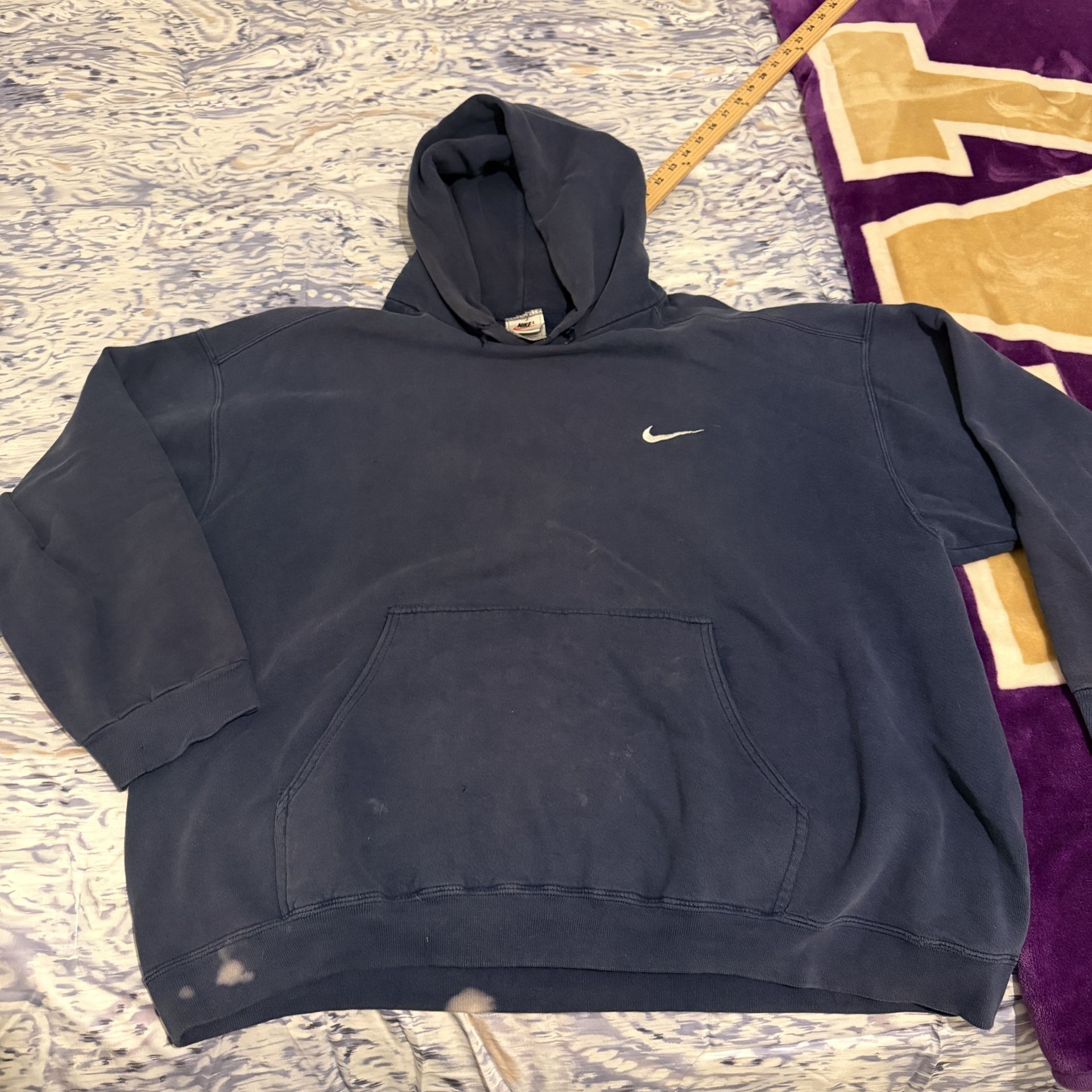 Nike Hoodie Pullover Mens Extra Large Blue USA Swoosh White Tag Distressed Vintage 90s