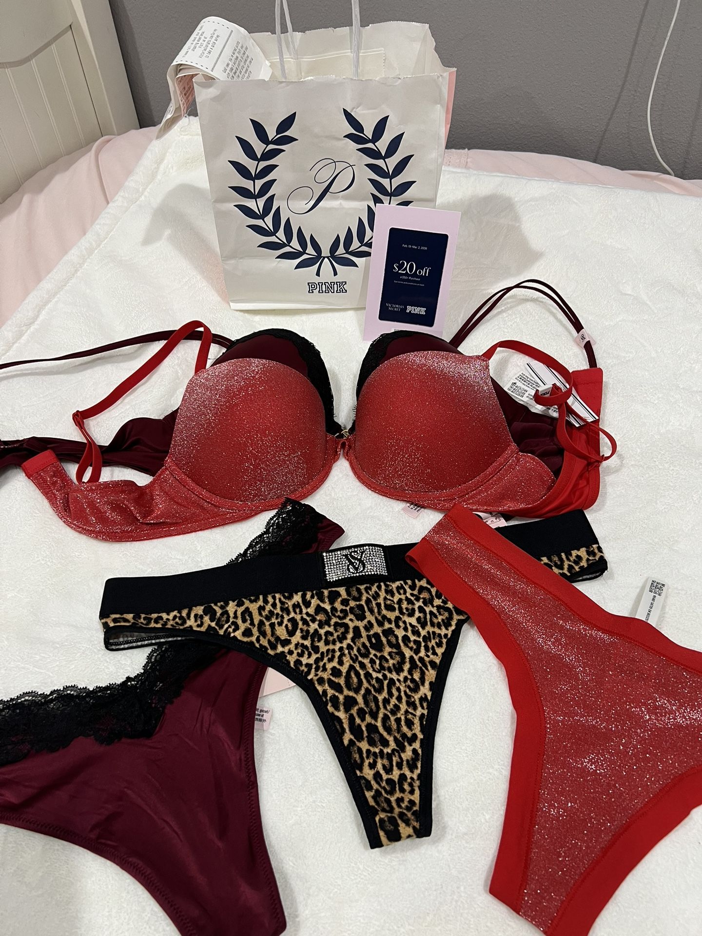 New All new ! All for 90 It was a GIFT but I’m don’t want it. Thong M size 14.95 18.95 14.50 Push up Bras 36B 54.95 39.95 I with give you two gift card for Victoria Secret 20% off It came with my present 🎁