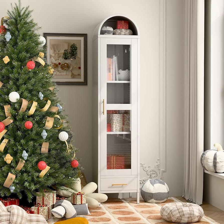 Modern Freestanding Arched Cabinet, Arch Display Bookcase with Glass Door/Drawer/Shelves for Dining Room, Home, Office, Kitchen Pantry, Assembly Required (White) Brand new in the box (w1)