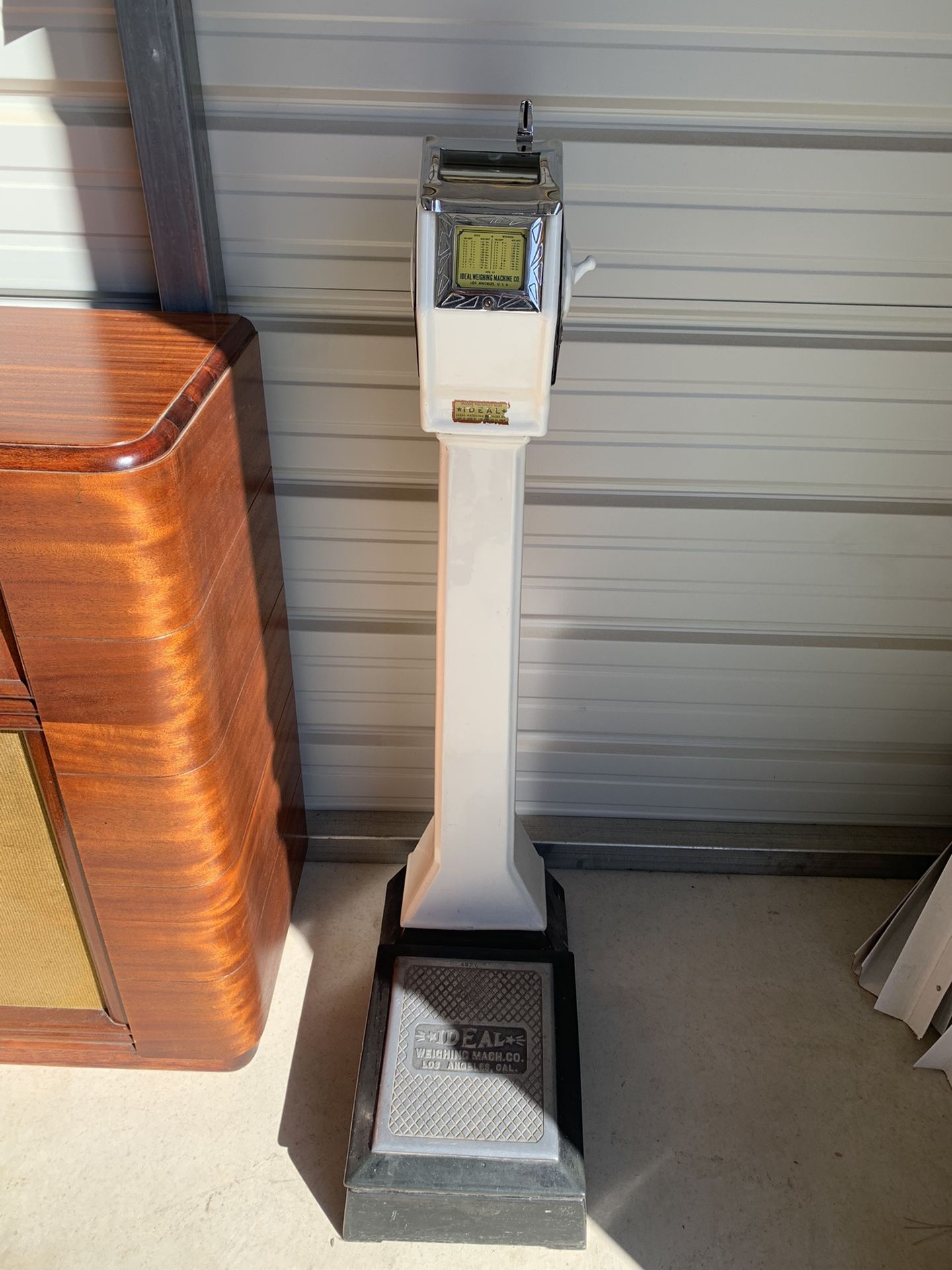 1929 Scale made by Ideal Mfg. Co. Los Angeles,Ca. Very nice condition, accurate and includes keys. Very heavy!