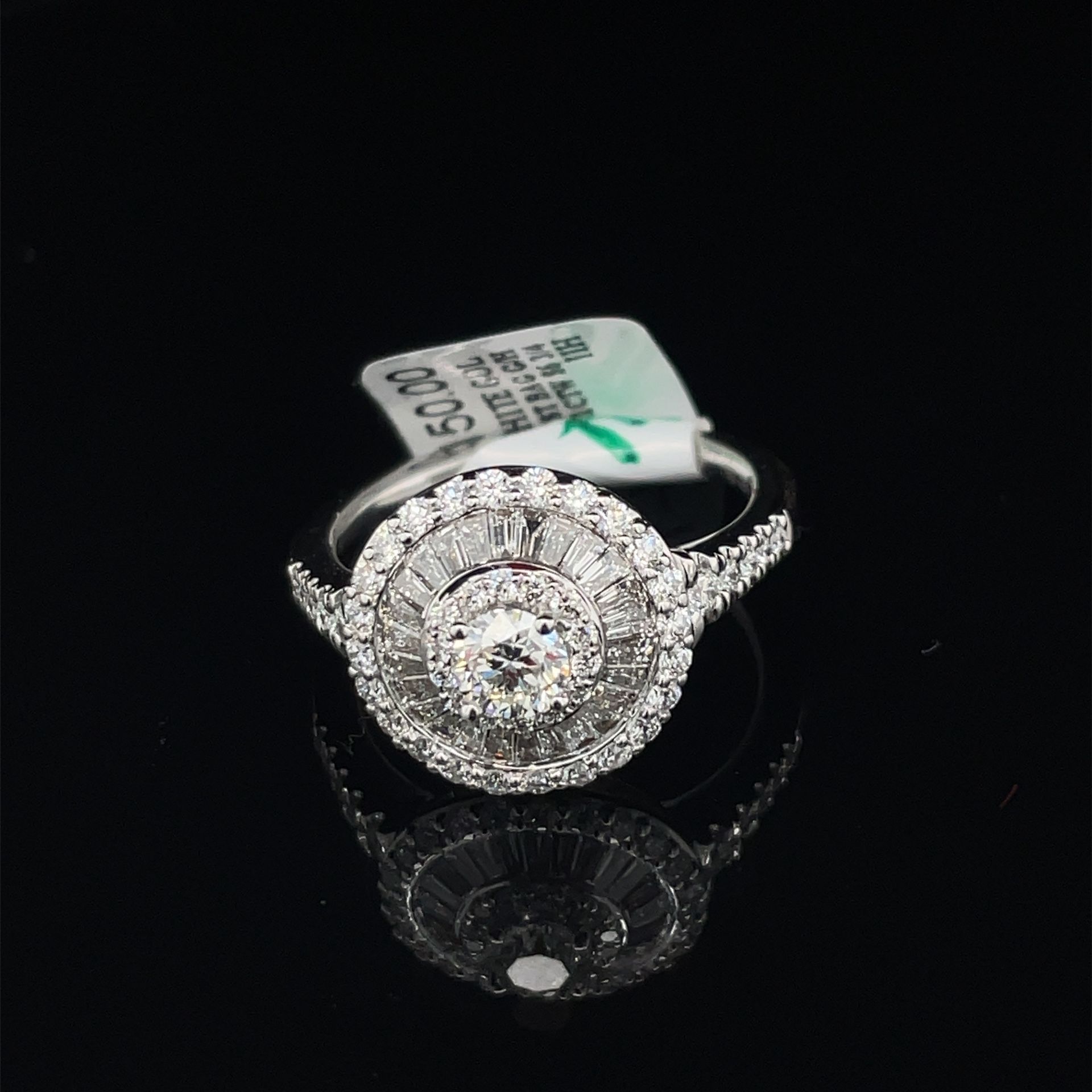 18KT White Gold Round Cluster With Baguette Diamonds VS 1 1CTW 177854