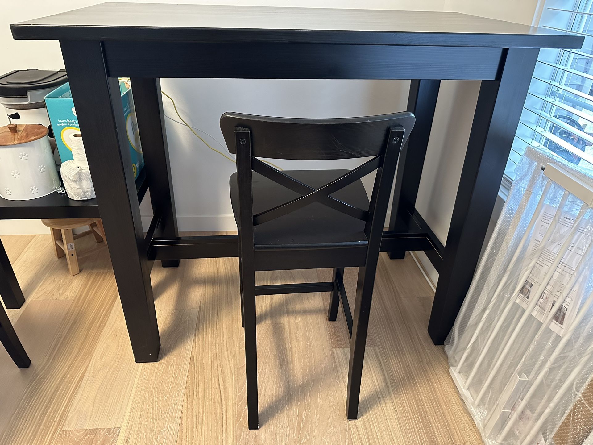 Very good condition! High dining table - 49.5”L 28”W 41.5”H High dining chair - 16”L 15”W 37.5”H It will be disassembled, pick up and cash only please, thanks!