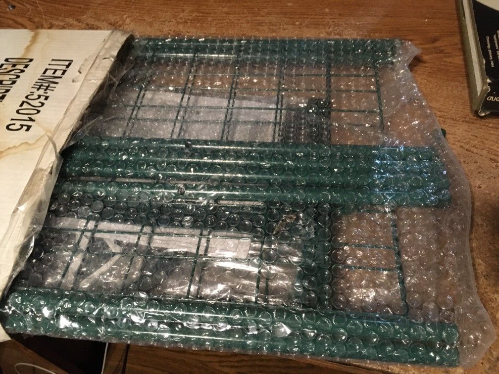 One of them is new never used but I had to replace the screws and nuts The other one is used has one of the sides broken still in good condition outside of that and had to replace the screws and nuts on that The boxes are bad but the shelves themselves will work perfectly fine.