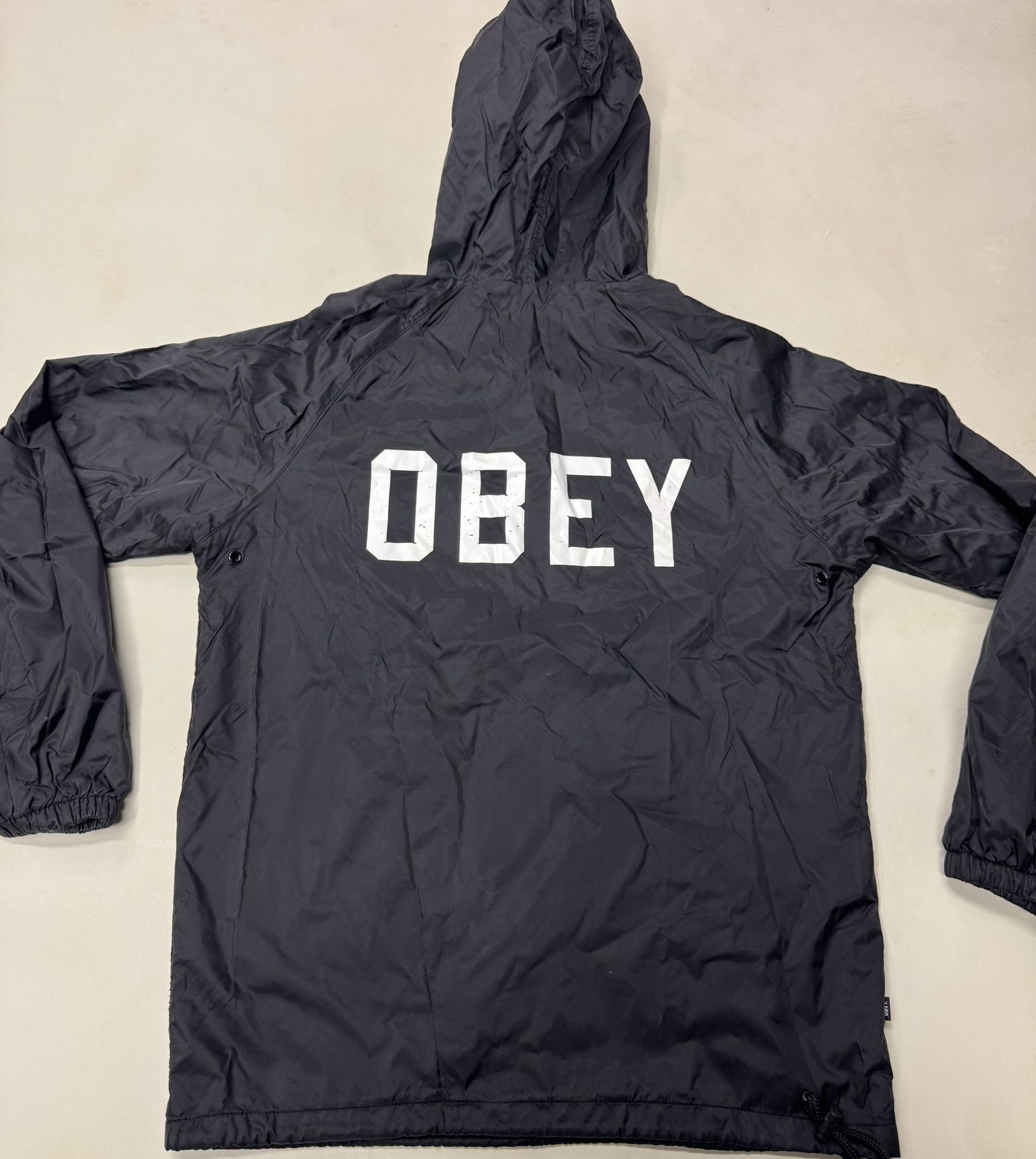 OBEY Nylon Windbreaker Hoodie 1/4 Zip Men’s Black Jacket Pullover Size Small Good condition See pictures for dimensions Fast shipping Feel free to ask any questions