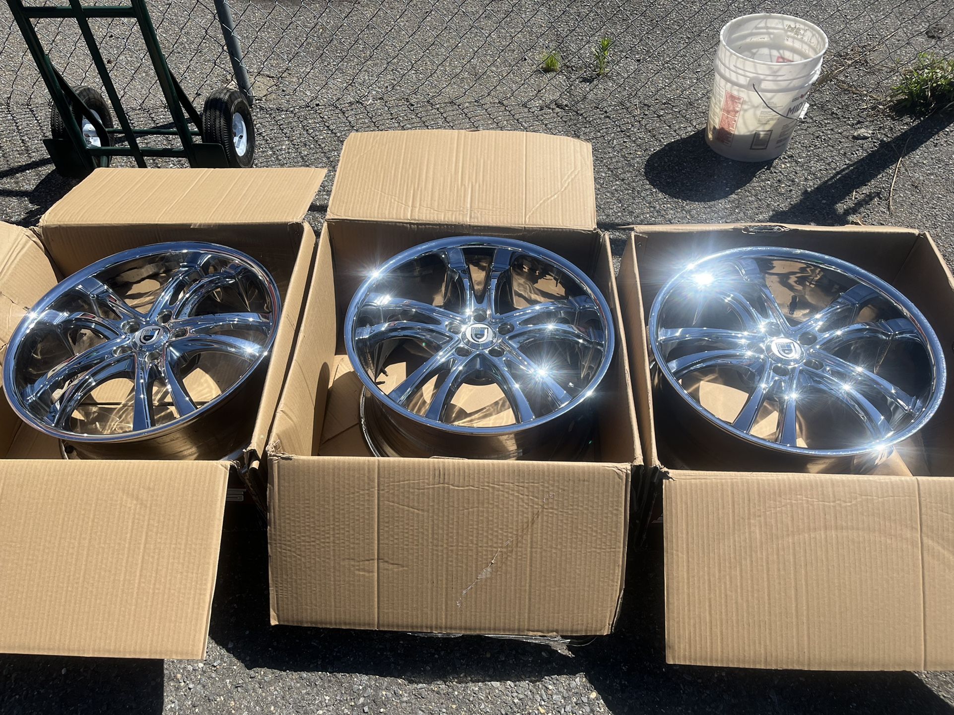 3 wheels only from Mercedes CLS (1) 20x8.5 front chrome wheel (2) 20x10 rear chrome wheels Needs one more 20x8.5 chrome wheel to make a set.