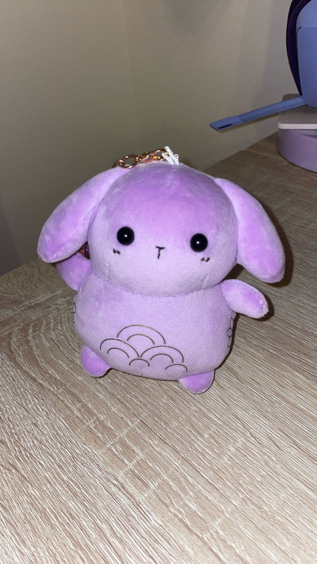 Purple pink bunny Tatcha keychain with makeup bag