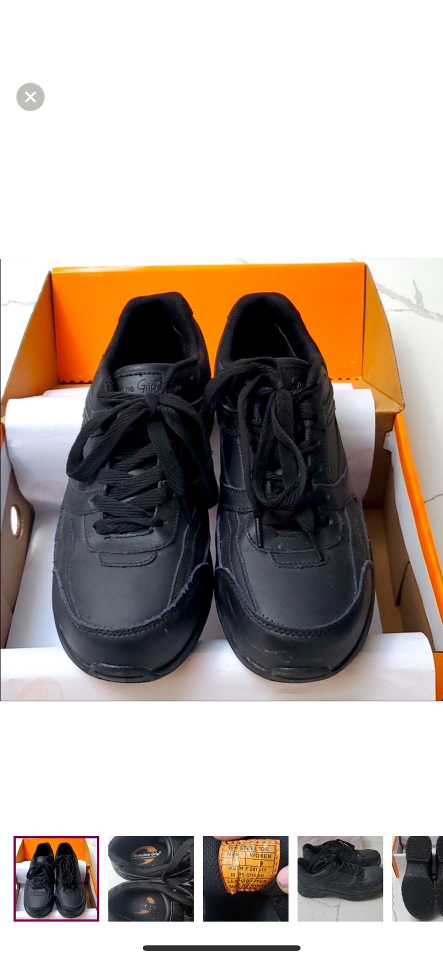 Steel Toe Black Shoes, Men 7/Women 9