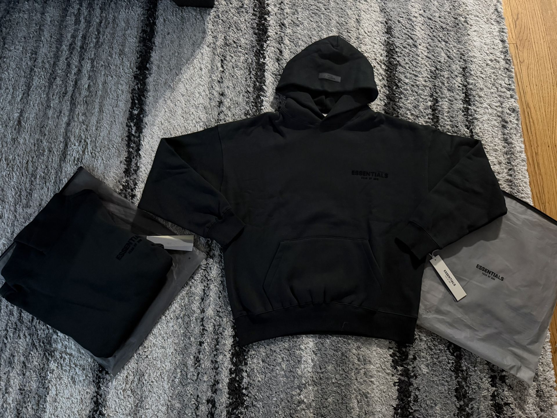 Essentials Hoodie Black Stretch Limo Brand New in Bag 100% Authentic Sizes: XS, Large Sweats available too More on profile!
