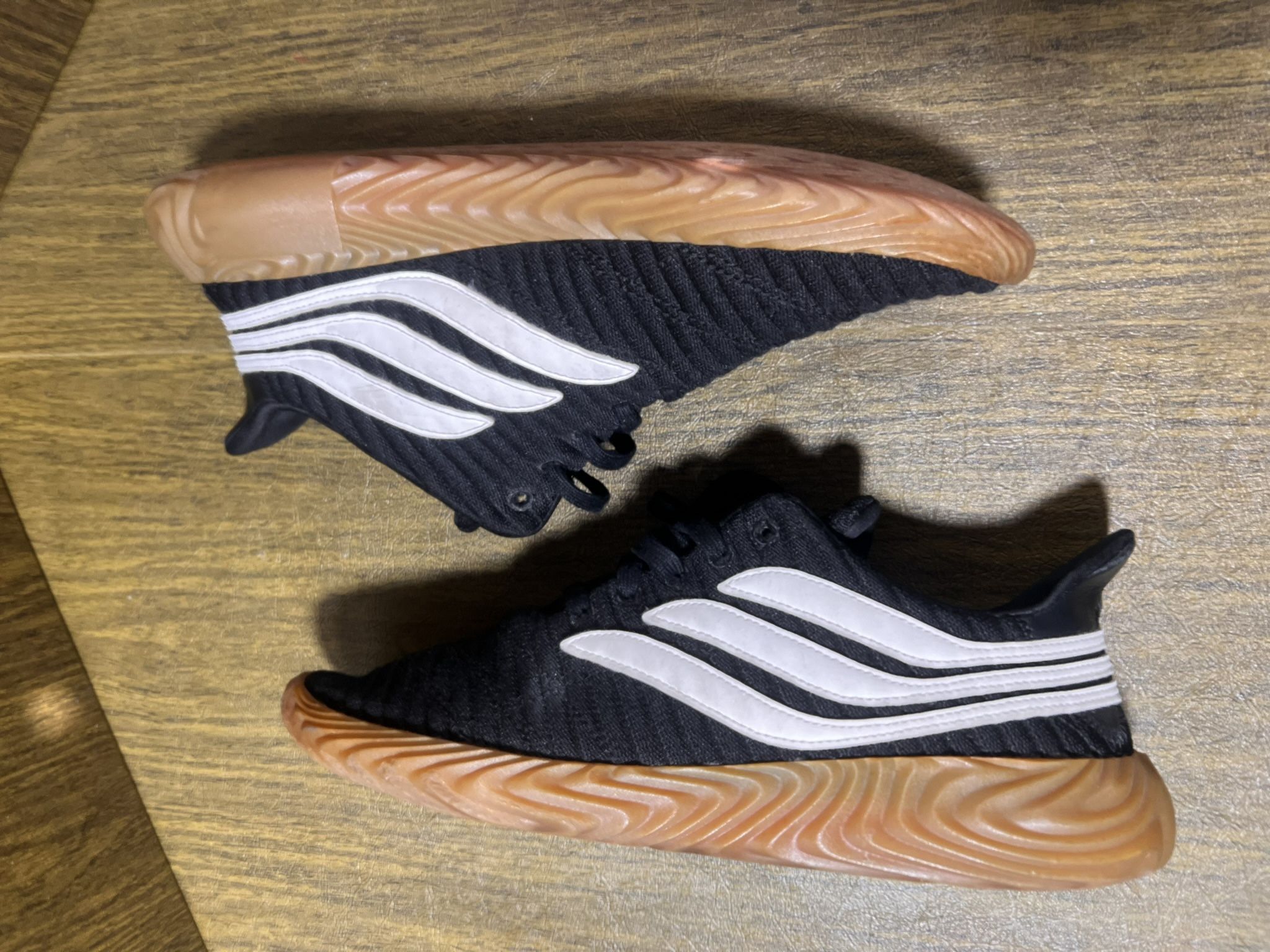 ADIDAS / SOBAKOV Soft Leather Shoes w/ GUMMY Bottom Soles Casual COMFORTABLE Soccer Kicks / Men's 12 / Like New w/o Box!! / Black & White
