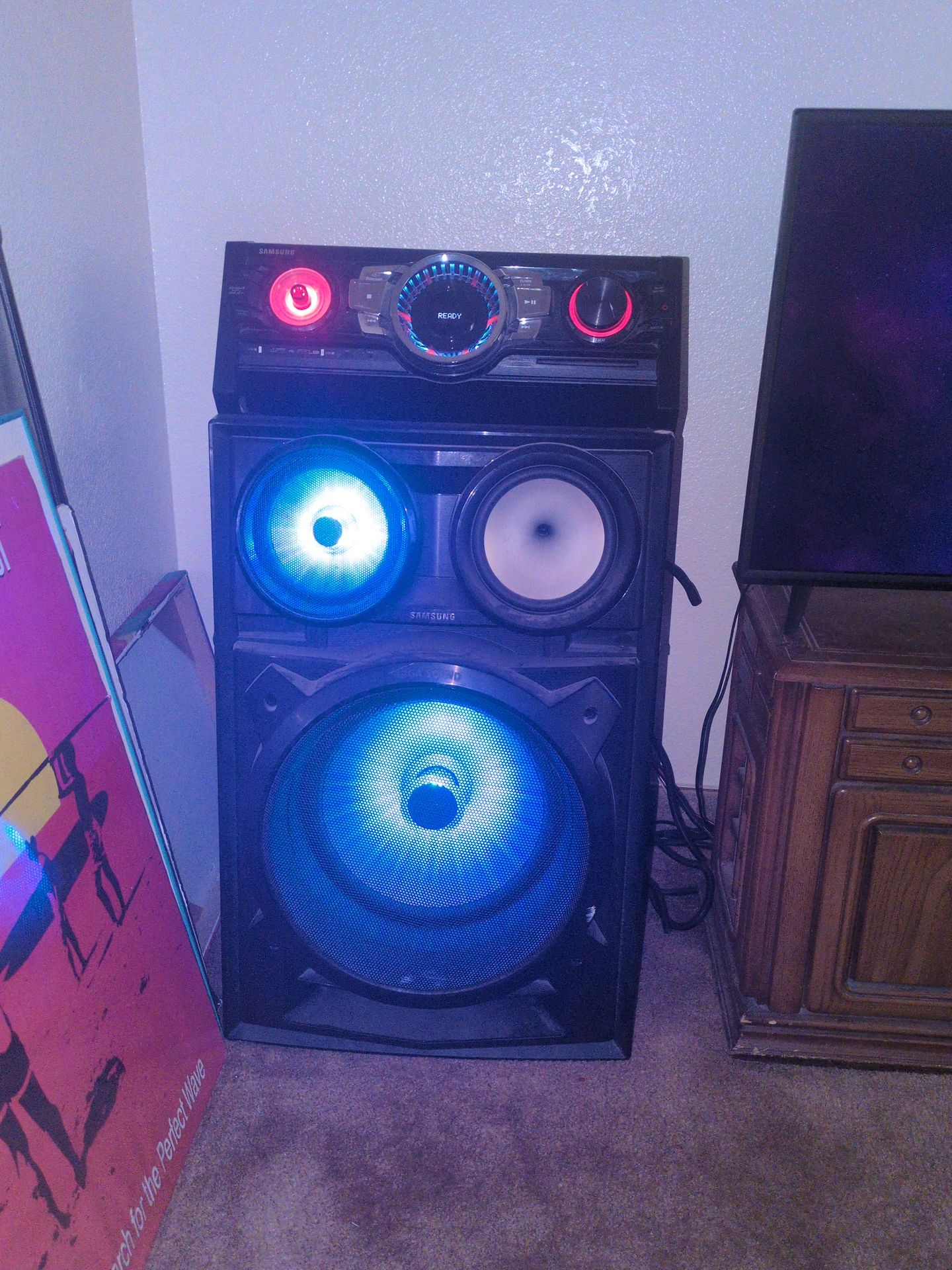 Bluetooth 3 pieces Very very very loud. Lots of bass. Different settings for the lights.