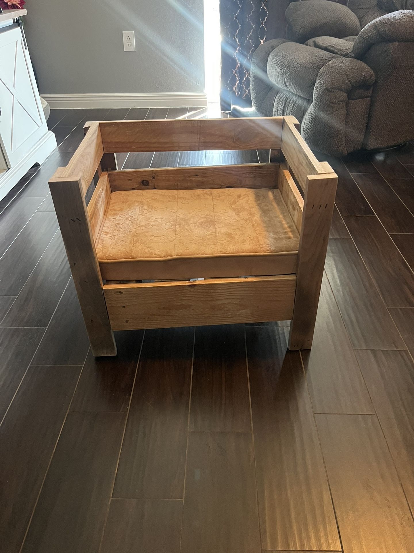 Brand new dog bed custom made with reclaimed wood. Sanded down, durable and comes with a brand new cushion. Perfect for your 4 legged best friend. Can make custom beds for larger dogs. Check out the dimensions . Call or text Stacy at (contact info removed)