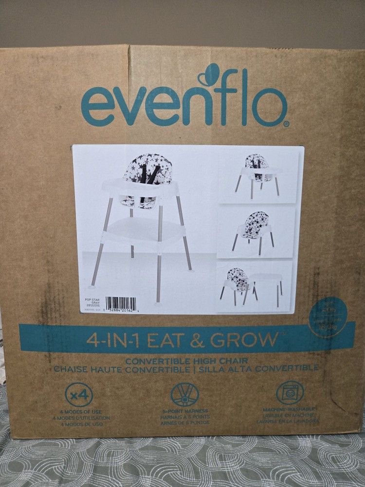 Evenflo 4-in-1 Eat and Grow Convertible HighChair.open box but still in original package.ready to use.
