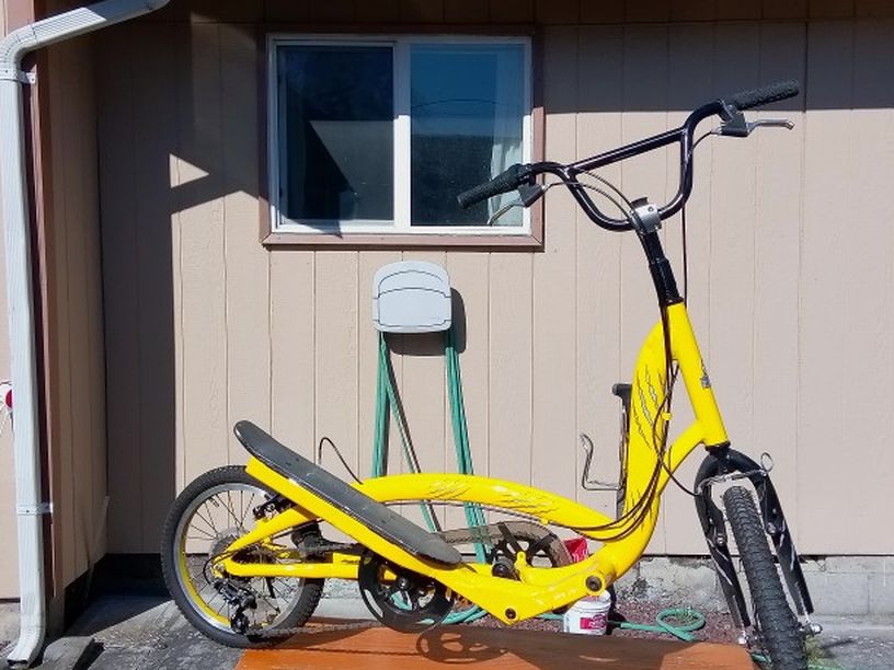 This is a nice zike bike in like new condition. This is a seven speed. Petal platform. Yellow with good like new tires. Lots of fun.