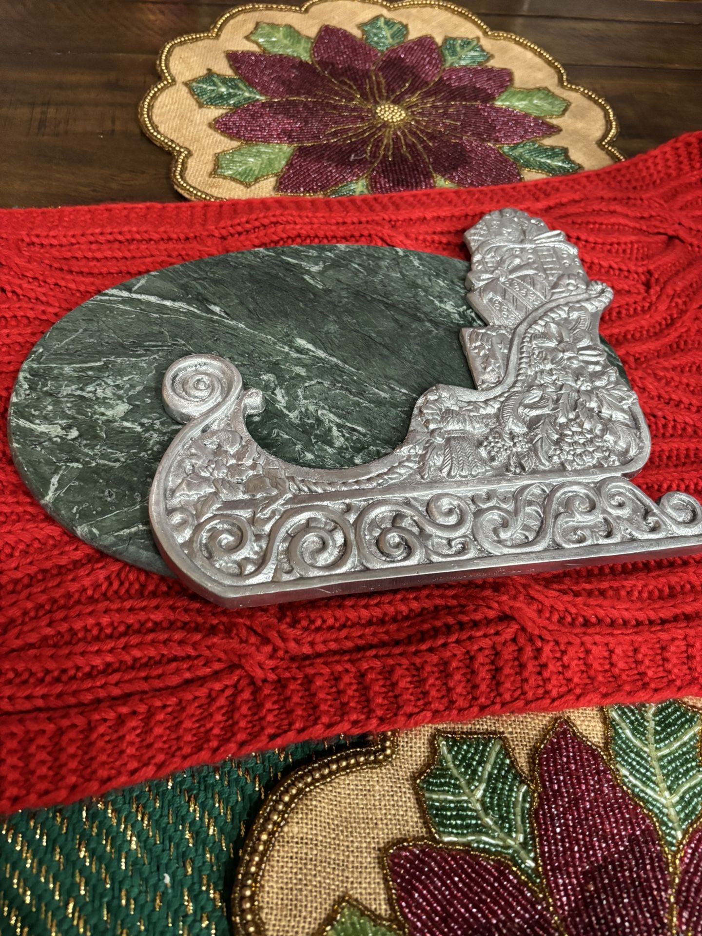 Heavy Marble Green And Metal Christmas Santa’s Sleigh Cheese Cutting Board