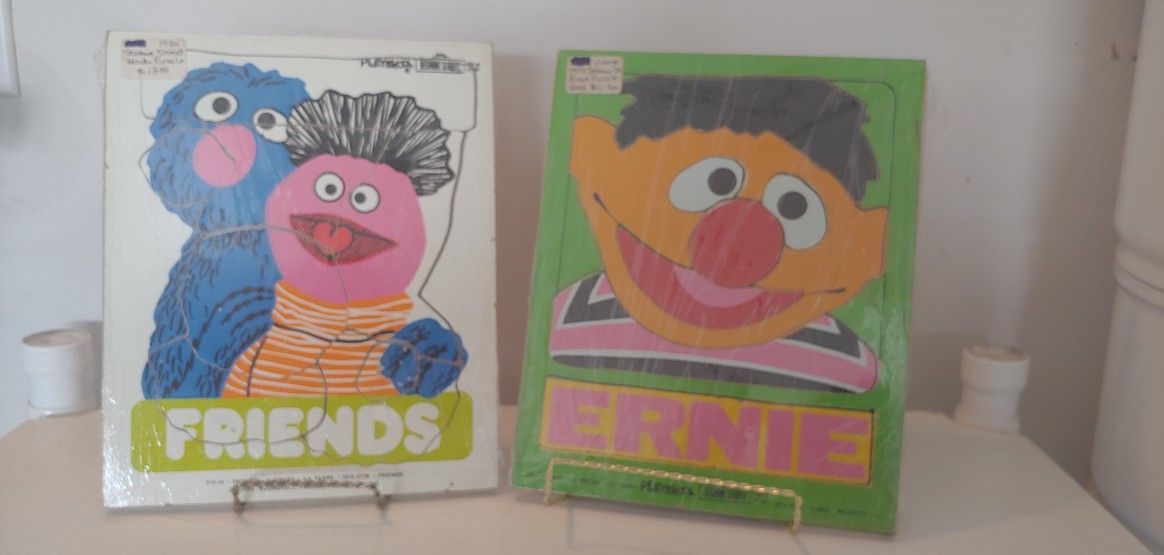PAIR of VINTAGE Playskool Sesame Street wood puzzles - "Friends" with Bert & Ernie & "Ernie". From 1970s. Pick up at my house.