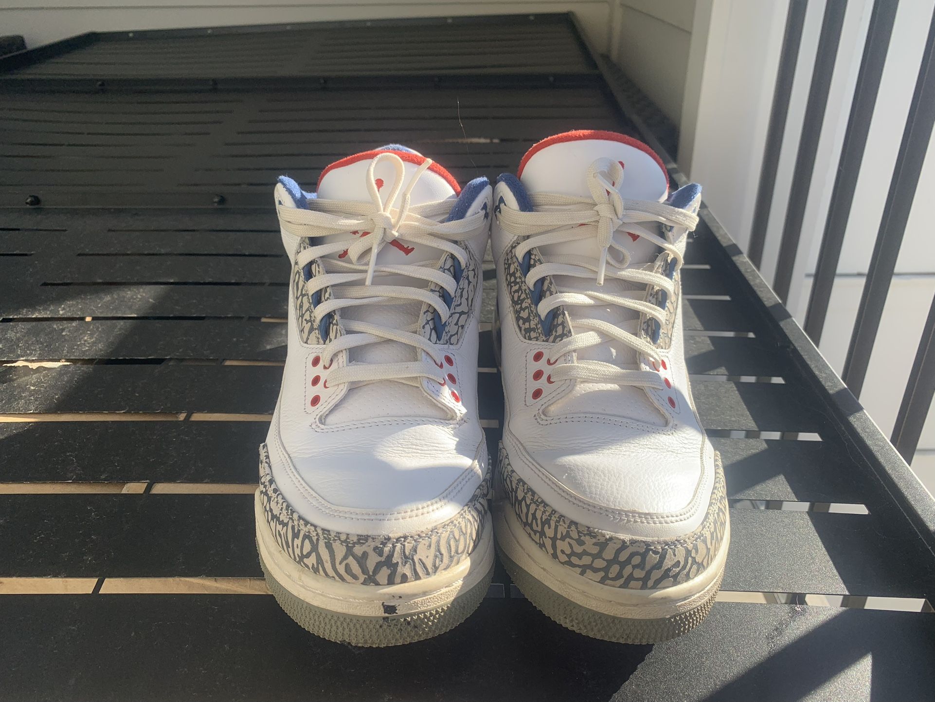 Size 11 Little crease Scuffs on back/heels (easy fix) No box Message me for more details and negotiate