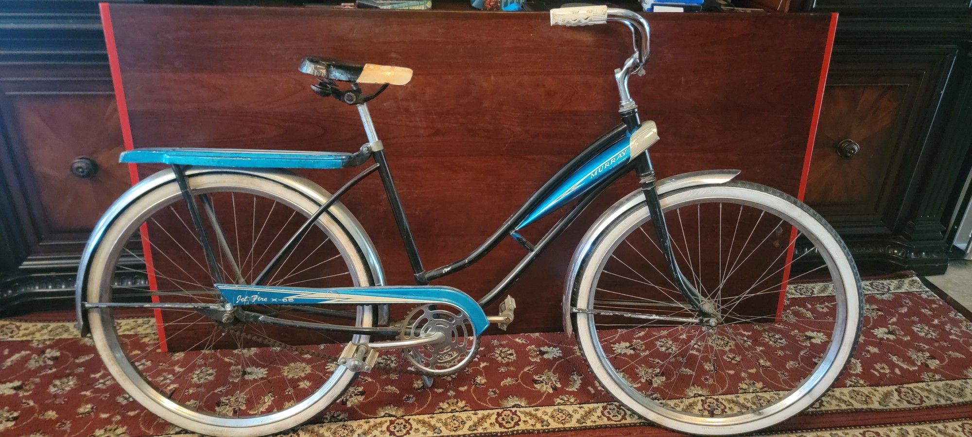Good condition vintage teal and white meteor flite with lights old school woman's bike