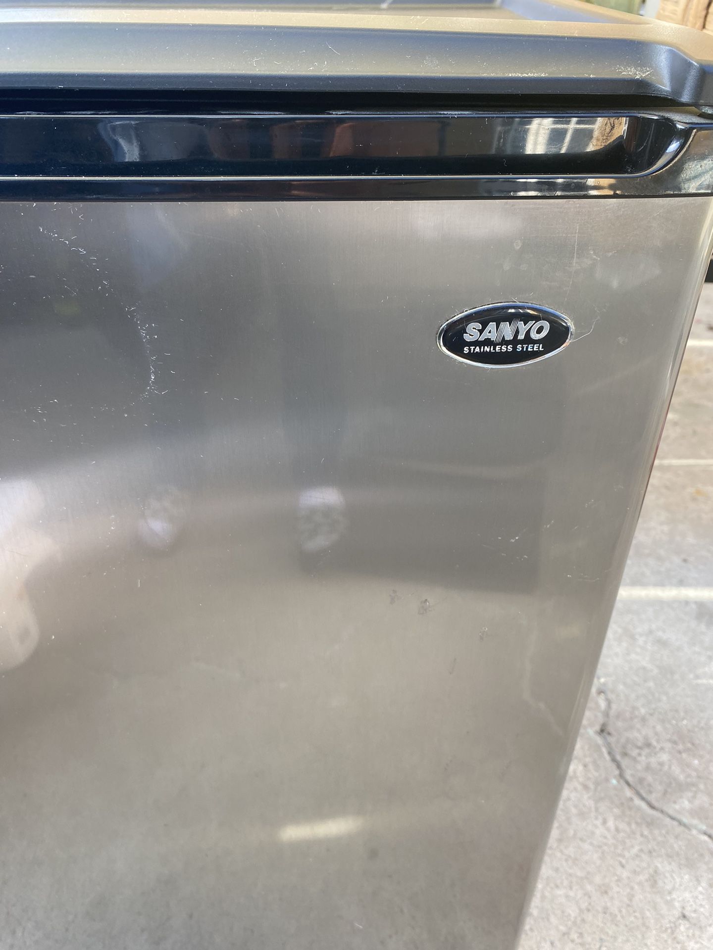 Sanyo mini fridge ,size 32” x 18”, stainless door.