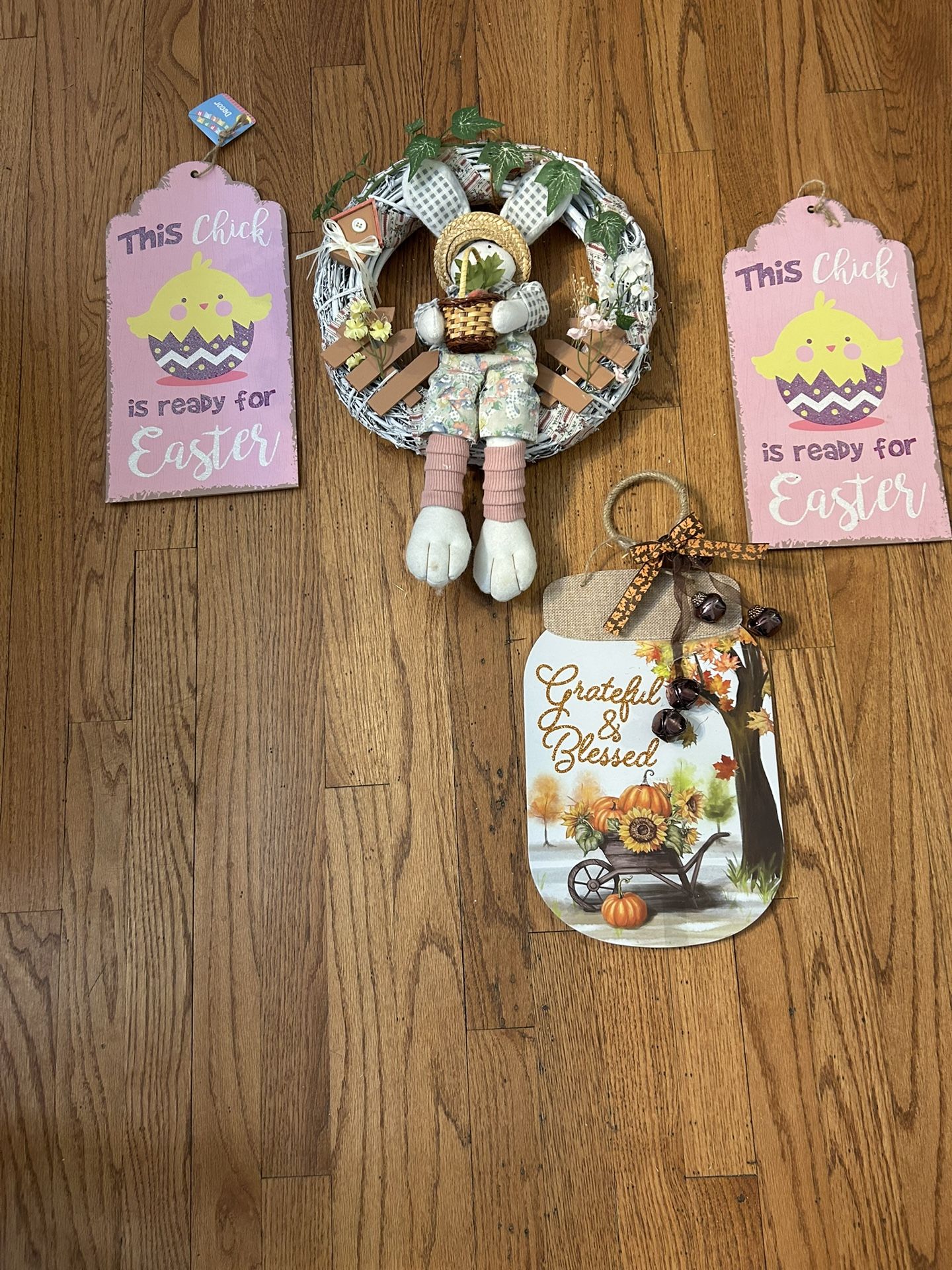 $10.00 Holiday Decorations Bundle Includes 4 Items 1 Wreath Spring / Easter 2 Easter Signage 1 Fall Signage