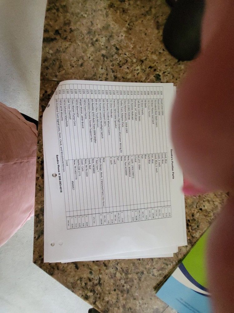16000 worth of parts for firebird, transam pontiac cars in 70's. I will sacrifice for 999 dollars. I am moving and need them moved by this week end. I have 7 inventory sheets Ican send to you if you provide me your email. My husband sold parrs to lovers of these cars and restored them https://offerup.com/redirect/?o=aGltc2Vsci5teQ== grandson. Is helping me. First come first served. Call Sam at (contact info removed) no scam calls