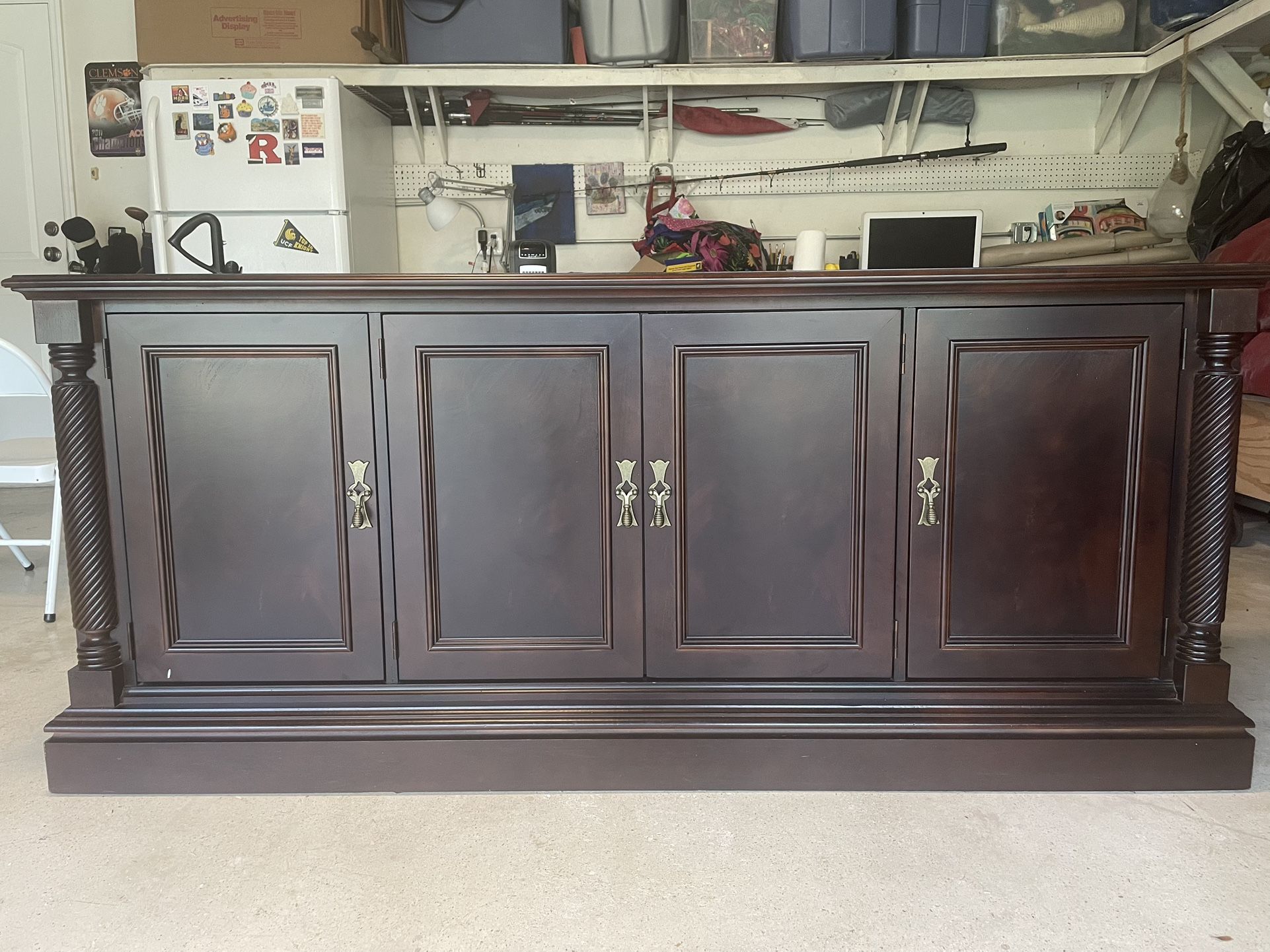Beautiful and timeless Stanley Furniture dark wood buffet in excellent condition. Features rich wood grain, classic design, and ample storage space with both drawers and cabinets. Perfect for a dining room, living space, or even as a stylish TV console. Solid wood construction Deep storage compartments Smooth-glide drawers Intricate detailing and quality craftsmanship Dimensions: L: 76" W: 19" H: 32.5" OPEN TO NEGOTIATE
