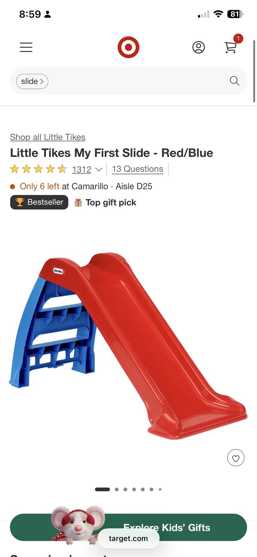 Used play slide. My sons too big for it Has some stickers on it little bit if scratches but still decent kids won’t care