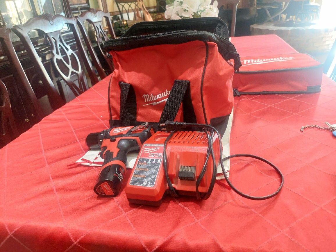 Milwaukee s12 Drill And battery and charger 95.00. And new bag