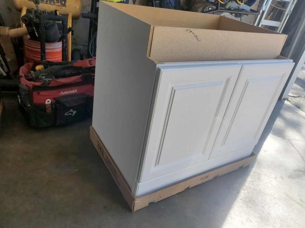 New hampton satin , 36 x 34 x 24, zinc base cabinet . 259 .00 at home depot, just pay 70 and is yours.