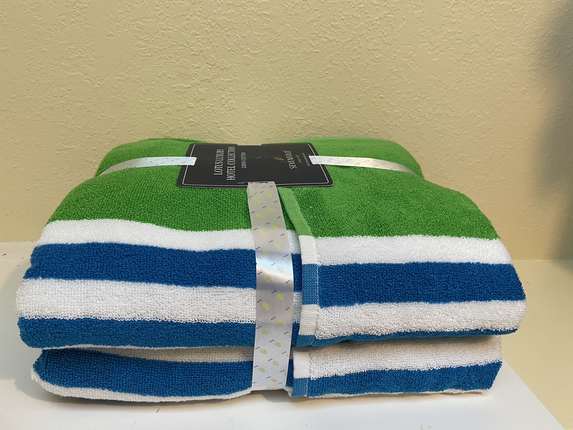 Pool Chair Cover, Patio Chair Cover, Beach Lounge Chair Cover, Green/ Navy Stripe size 87”X34” Good Absorbent Soft Hand Feeling