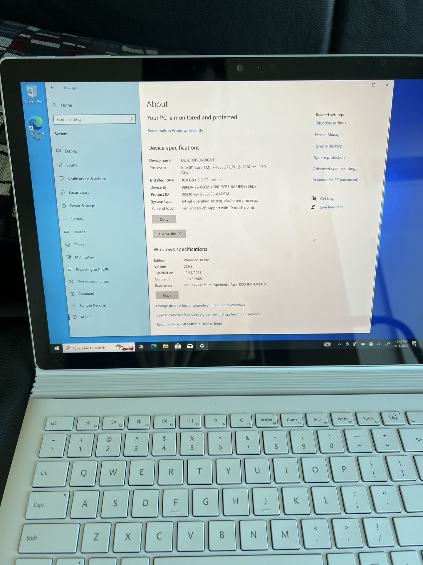 Device specifications Processor - Intel(R) Core(TM) 17-1065G7 CPU @ 1.30GHz 1.50 GHz Installed RAM - 16.0 GB Device ID - 9B6DA172-8D32-4C88-9CB3-6A21ED73B6D2 Product ID - 00(contact info removed)8-42736-AAOEM svstem woe - 64-bit operating system, x64-based processor Pen and touch - Pen and touch support with 10 touch points Storage - 256GB