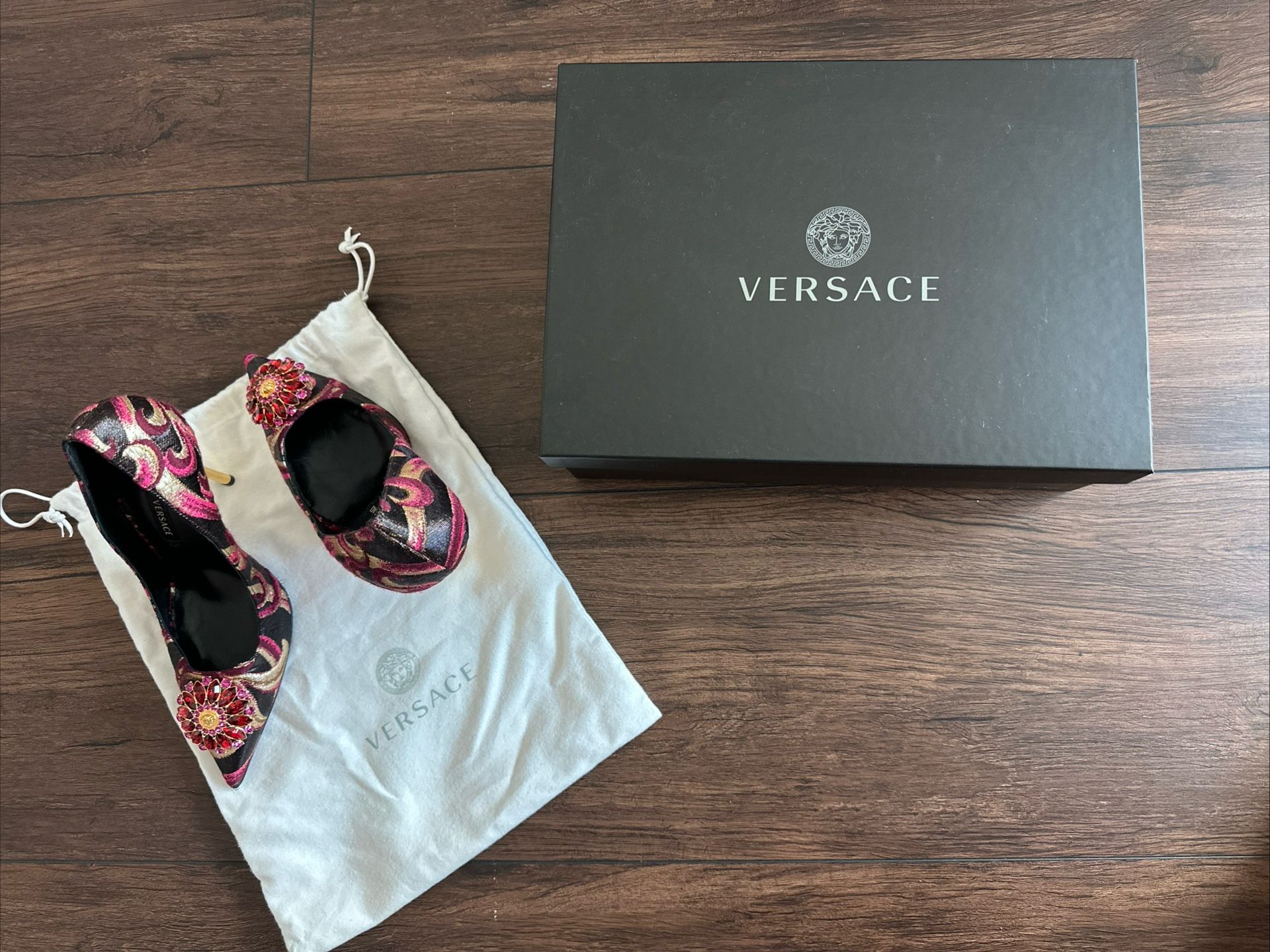Versace Crystal Flower Pumps Gold Heels